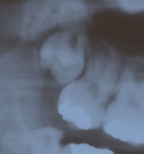 これは下の「おやしらず」横向きに生えています。手前の歯が虫歯になりやすくなります。